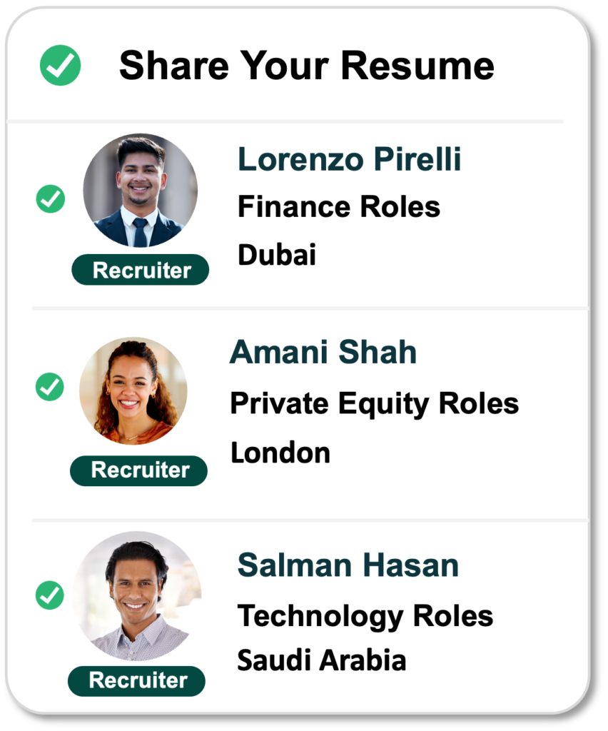 Whether you’re scaling a team, hiring for a critical role, or building a future talent bench, we help you stay visible, trusted, and top-of-mind with the professionals who matter most in the Middle East’s most competitive markets.